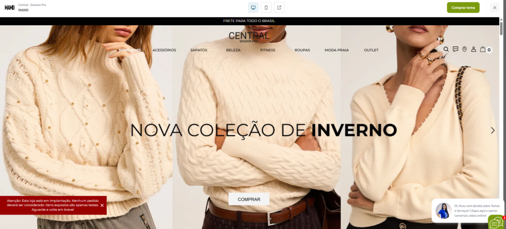 Após escolher o tema desejado, ele pode ser aplicado à loja para alterar o visual do site.